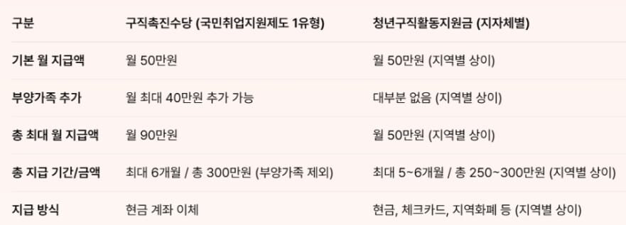 두 제도 모두 구직자에게 금전적 지원을 제공하지만