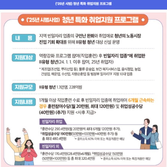 | 대상 | 청년 (만 18~34세 미취업자) | 전 연령 (청년 포함) |