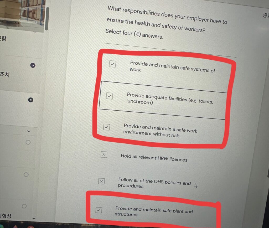 호주 멜버른 포크리프트 자격증 온라인 시험 족보 공유 2